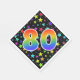 Dieses aufregende, lustige und lebendige Papier-Serviette-Design zeichnet sich durch viele farbenfrohe Sternformen aus, zusammen mit der Zahl "80" mit einem farbenfrohen Regenbogen-inspirierten Farbverlaufsmuster auf schwarzem Hintergrund. Papierservietten wie diese können bei einem Party zum 80. Geburtstag von jemandem, zum 80. Geburtstag, zum 80. Geburtstag eines Ehepaars oder zu einem anderen 80. [~Z0000346]