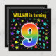 Farbenfrohe Sterne + Regenbogenmuster "9" Geburtst Einladung