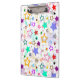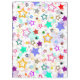 ein mehrfarbiges Design kombiniert ausgefüllte und umrandete Sternformen in einer spielerischen, chaotischen Harmonie aus Rot, Lila, Blau, Gold und Türkis auf weißem Hintergrund