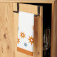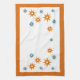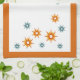 Genießen Sie die moderne Küche mit diesem stilvollen Küchentuch aus der Mitte des Jahrhunderts. Die Sternexplosionen sind in türkisblauen, rot-orangen und gelben Farbtönen gehalten und in hellen Orangen gerahmt.