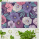 Farbenfrohe Stiefmütterchen auf tiefviolett Geschirrtuch