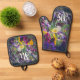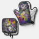 Farbenfrohe Stiefmütterchen im Garten Ofenhandschuh & Topflappen-Set