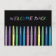 Eine ganz einfache schwarze Postkarte mit bunten Stiften, um Ihren Schüler in diesem Herbst wieder in die Schule zu begrüßen. Personalisieren Sie es mit Ihrem Text mithilfe der bereitgestellten Vorlage. © ArianeC Illustrations-Alle Rechte vorbehalten