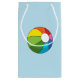 Ein zeichn eines bunten Beachballs. Es hat acht verschiedene Farben wie Rot, Orange, Gelb, Apfelgrün, Grün, Blau, Indigo und Magenta. Dieses einfache Konzept ist ein guter Empfang für den Sommer.