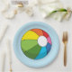 Ein zeichn eines bunten Beachballs. Es hat acht verschiedene Farben wie Rot, Orange, Gelb, Apfelgrün, Grün, Blau, Indigo und Magenta. Dieses einfache Konzept ist ein guter Empfang für den Sommer.