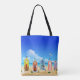 Eine Reihe von bunten Strandhäusern am Strand, aufgedruckt auf Tüte. Weitere Western-Artikel finden Sie im Rodeo Days Store.