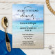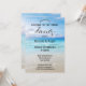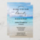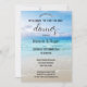 Moderne Probe-Dinner mit einem Bild eines Strandes in kräftigen Farben. Diese Einladung eignet sich hervorragend für ein Paar, das einen Strand, eine Schifffahrt oder eine Hochzeit in Urlaubsort plant.