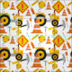 Ein farbenfroher und niedlicher Stoff für Kinder, der mit einem Traktor, Straßenverkehrszügen, Warnschildern und Werkzeugen auf weißem Hintergrund ausgestattet ist. Ideal für Kinder, die Liebe Konstruktion und helle Farben. Ideal zum Stechen oder Erfrischen eines Kinderzimmers mit neuen Zuhause-Accessoires und Dekorationen.