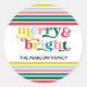 Farbenfrohe Streifen Merry & Bright Custom Family Classic Round Aufkleber. Farbenfrohe Farbstiche auf weißem Hintergrund mit Retroschrift. Merry & Bright. Fröhliche Feiertage und frohe Weihnachten, Frankie + Marlow!