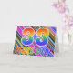 Die Vorderseite dieses aufregenden, auffälligen und lebendigen Geburtstagskarten-Designs zeigt ein farbenprächtiges gestreiftes Muster, zusammen mit der Botschaft "33 Jahre alt!" mit einem farbenfrohen Regenbogenmuster. Im Inneren befindet sich eine benutzerdefinierte Begrüßungsnachricht, oder Sie können vielleicht gelöscht und leer verlassen werden, wenn eine Nachricht von Hand geschrieben werden soll. Eine solche Grußkarte könnte eine lustige Art sein, jemandes dreiunddreißigsten Geburtstag zu bestätigen. [~Z0000351]