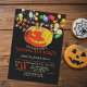 Erleben Sie ein einmaliges Halloween-Party-Erlebnis mit unserer individuellen Einladung. Set vor einer geheimnisvollen schwarzen Kulisse, finden Sie lebendige Saitenlichter, die einen zauberhaften Glanz ausstrahlen. Ein schelender, grinsender Kürbis verleiht dem Ganzen eine zusätzliche Touch von Charme. Was diese Einladung wirklich besonders macht, ist, dass der Text ganz Ihnen gehört, um zu personalisieren. Also, lass deine Kreativität wild laufen und mache dein Halloween-Fest einzigartig!