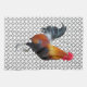 Farbenfrohe Strutting Rooster Küchentücher, mit einem Bild aus einem Foto eines Key West Roosters (von ©sjasis) vor einem viereckigen Hintergrund.