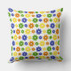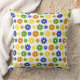 Ein helles und fröhliches, großes Kissen, das in farbenfrohen, dunklen Blume in Gelb, Grün, Blau und Orange gestaltet wurde.