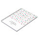 Ein buntes Notizbuch mit einem Muster verstreuter, farbiger Dreiecke, weißer Platz im unteren Drittel der Karte für Ihren Namen und Notizbuch-Titel in schwarz,