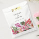 Farbenfrohe Tropische Gastgeschenk Hochzeit Tasche. Diese tropische Floral Favor Tasche mit handbemalten Blumen in lebhaften Fuchsientönen, Blüten und tropischem Grün wird die Gäste mit tropischem Charme bezaubern. Ideal für süße Leckereien oder kleine Zwischenmahlzeiten, koordiniert es wunderbar mit Ihrer Inselfeier inspiriert. Personalisieren Sie es mit Namen, Daten oder einem kurzen Dank für eine persönliche Touch, die einen bleibenden Eindruck verlasst. Lass jedes Detail reflektiert die Freude an deinem Tag.