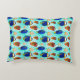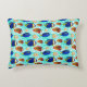 Einzigartiges Kissen vorne und hinten mit handgezeichneten tropischen Fischdarstellungen in leuchtend blau und orange, auf einem korallengemusterten Hintergrund