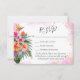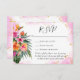 Voll anpassbare traditionelle Hochzeit RSVP Karte mit QR-Code-Option auf der Rückseite, um Ihren Gästen mehr Optionen zu antworten. Die Einrichtung besteht aus einem farbenfrohen, tropischen Blumenstrauß in Rosa, Orange und Grün, mit rosa und Imitat goldenen Farbtönen.