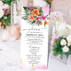 Dieses farbenprächtige tropische Hochzeitsdesign ist ideal für Paare, die einen Sommer, einen Strand oder eine Hochzeit in Urlaubsort planen. Das wunderschöne und lebendige Aquarellbild mit tropischen Blume in Rosa und Orange erinnert an ein wunderschönes Inselparadies. Es wird von den Goldelementen der Imitate unterstrichen, die dem Gesamtbild eine Touch von Glamour und Eleganz verleihen.