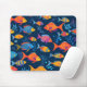 Farbenfrohe tropische Fischmuster auf blauem Mousepad