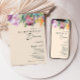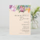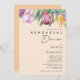 Diese farbenfrohe tropische Blüte | Peach Probe Dinner Einladung ist perfekt für Ihr modernes boho Ziel grün, lila, Pfirsichessen Probe. Das Design besticht durch ein elegantes Bouquet mit klassischen Aquarelltönen und Blume, darunter ein schlängelgrüner Eukalyptus, Lila und rote Protea, ein rot-rosa Hibiskus, ein orangefarbener und blauer Paradiesvogel und ein dunkelgrünes Palmenblatt. Das Design ist ideal für eine einfache, kreative, einzigartige Reise Hochzeit für Frühling, Sommer, Herbst oder Winter! In der Erholung der Sammlung finden Sie weitere passende oder koordinierende Hochzeitsstätten.