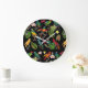 Farbenfrohe tropische Papageien, Blätter und Blume Große Wanduhr