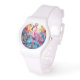 Die farbenfrohen Tropenrosa Flamingo Elegant Womans Watches bieten ein farbenfrohes tropisches Paradies mit einem rosa Flamingo, umgeben von tropischen Blume. Erstellt von Evco Studio www.zazzle.com/store/evcostudio