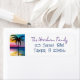 Die künstlerische KI erzeugte bunt Meereskunst, Strandpalme und Meereswellen reflektieren Rücksendeadressen-Aufkleber.