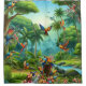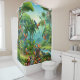 Farbenfrohe tropische Vögel unter lebendiger, üppi Duschvorhang