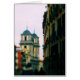 Schicken Sie eine Nachricht an jemanden mit dieser Grußkarte und erschossen vom Plaza Mayor von einem Paar bunter Zwillingstürme in Madrid, Spanien.