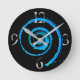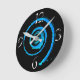 Die Wanduhr mit abstraktem Bild eines hellblauen, schwarzen Kreisels auf der Vorderseite der Uhr. Anpassbar.
