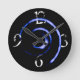 Die Wanduhr mit abstraktem Bild eines lila, schwarzen Kreisels auf der Vorderseite der Uhr. Anpassbar.