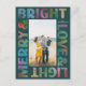 Ein Spritzer mit festlichen Farben beleuchtet diese moderne, aquamarine, textbasierte Urlaubskarte mit der Aufschrift "Merry & Bright Liebe & Light". Diese bunte, saisonale Postkarte bietet einfache und einfache Bearbeitung von Familiennamen Text und Platz für Ihr bestes Portrait der Saison. Personalisieren Sie den Rücken mit Ihrer eigenen, individuellen Nachricht und einer Rücksendeadresse für das einfache Senden.