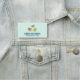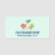 Ein Namensschild mit einem Trio niedlicher und skurriler, von Hand gezeichnet Vögel. Zwei der Vögel sind stehend, zusammen mit ein paar winzigen grünen Pinienbäumen zwischen ihren Füßen. Ein anderer blauer Vogel fliegt in der Luft zwischen ihnen hoch. Minz grüner Hintergrund.