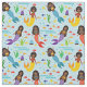 Hübsch Afro Mermaids Pink Yellow Lila mit Fisch auf einem blass blauen Stoff - sehen Sie in meinem Laden für viel mehr tolle Stoffdesigns