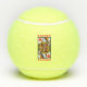 Diese Tennisbälle haben eine Queen-Spielkarte des Herzens-Anzugs, die farbenfroh und ornig illustriert ist mit einer Reihe von roten Herzen über und unter der Karte auf der Vorder- und Rückseite.