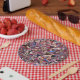 Farbenfrohe Vintage Crazy Quilt Pappteller