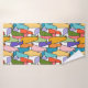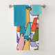 Dieses Set ist mit einem helltürkisfarbenen Waschlappen, einem dunkleren türkisfarbenen Handtuch und einem Badehandtuch ausgestattet, das sich in den Power-Farben der Blume in einem modernen Design überlagert. Woll verschiedene Farben? Nachricht.