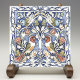 Dieses aufwändige Fliesendesign zeichnet sich durch eine symmetrische Anordnung von bunten Vögeln und blühenden Blume auf tiefblauem Hintergrund aus. Inspiriert von Vintagen europäischen Keramik- und Naturmotiven, verbindet das Stück erdige Töne mit anmutigen Linien im klassischen Kunsthandwerk. Ideal für Naturliebhaber, Vogelliebhaber oder diejenigen, die mit eleganten, alten Botanischen Mustern gezeichnet sind, verleiht dieses Kunstwerk jedem Produkt zeitlosen Charme und lebendigen Charakter.