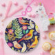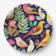 Farbenfrohe Vögel Blumenmuster blaue Dekoration Pappteller