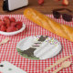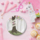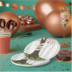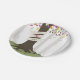 Teller mit einer Abbildung eines Baumes mit in Banner ummanteltem Kofferraum. Die Blätter sind in verschiedenen Rosa-, Grün-, lila- und Gelbtönen gehalten. Personalisieren mit Namen. Suchen Sie nach passenden Hochzeitseinladungen und mehr in Jill's Paperie.