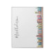 Notepad mit farbenfrohen Aquarellbüchern, die mit personalisiertem Lehrernamen versehen sind.