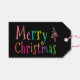 Das Design enthält einen farbigen Text, der "Frohe Weihnachten" und einen niedlichen Baum mit einem Stern auf schwarzem Hintergrund lautet. Auf der Rückseite befindet sich "Von und zu" Text, den Sie bearbeiten oder löschen können.