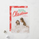 Niedliche, moderne Weihnachtskarte in einem rot-grünen Schriftzeichen-Overlay. Personalisieren Sie die Vorderseite der trendigen Urlaubskarte, indem Sie Ihr Foto und Ihren Namen hinzufügen. Die Foto-Urlaubskarte kehrt sich um und weist ein weißes Schneeflockenmuster mit rotem Hintergrund auf.