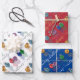 Farbenfrohe Weihnachts-Glitzer-Ornamente Geschenkpapier Set