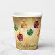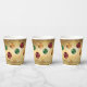 Farbenfrohe Weihnachtsbaumchen auf dem Gelben Boke Pappbecher