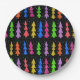 Farbenfrohe Weihnachtsbäume auf schwarz Pappteller