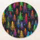 Farbenfrohe Weihnachtsbaumglühen im Dunkelwald Runder Pappuntersetzer