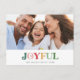 Diese farbenfrohe Weihnachtslandschaft Foto Urlaub Postkarte macht den perfekten modernen Urlaub Gruß. Das einfache Design zeichnet sich durch niedliche und lustige Typografie aus, die abwechselnd farbige Buchstaben in rot, rot, rot, grün, pastellgrün und gelb enthält. Fügen Sie Ihr Familienbild hinzu und personalisieren Sie die Postkarte mit Ihrem Familiennamen, Jahr, persönlichem Gruß und Namen.