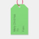 Weihnachtsgeschenk-Tags mit Grafiken, eine gelbe, grüne, blaue und rote Retro-Stil Weihnachtslampen. Farbige grafische Texte lesen Merry and Bright. Die Rückseite ist in solidem Grün gehalten, wobei der schwarze Text nach Maß angepasst werden kann, um das zu lesen, was Sie gewollt haben. Es ist ein passendes Packpapier verfügbar.