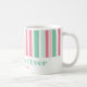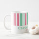 Rosa und Grün sind so leckere Farben. Sie sind eine großartige Kombination für Weihnachten. Diese lebendigen Retro-Streifen sind viel Spaß auf diesem Weihnachtskaffeebecher. Unser minziger Text "Weihnachtsfreude" ist editierbar. Stellen Sie sicher, dass Sie die Beispielnamen und das Datum in die gewünschten ändern.